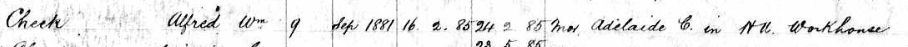In 1885 we find Adelaide aged 22yrs and young Alfred in the work house where she says she is the wife of Alfred C, deserted.
