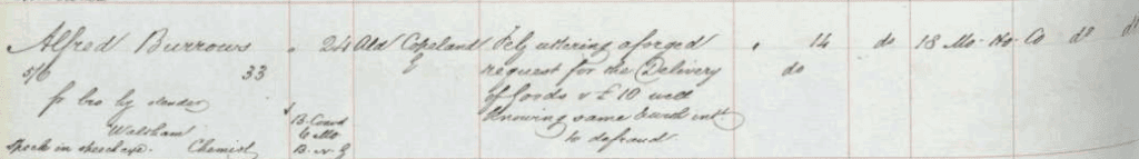 Adelaide Mary’s mother, Adelaide Sophia Boyer (1831 – 1903) married Alfred Burrows in 1862.  Alfred had already been convicted of fraud and been sent to Newgate Prison in 1859.
