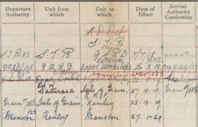 The same war record refers to his sisters, Flora and Helen. We also see reference to his wife, Phoebe. We can see in the records that, post-war in 1919, he was still in the army serving in Battersea, Isle of Grain, Kenley and Manston up until January 1920.