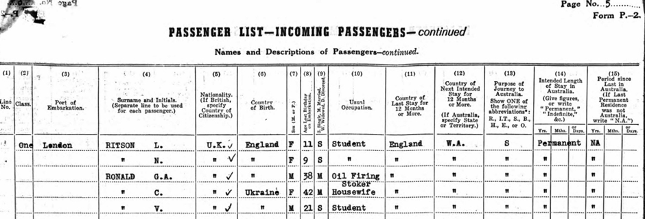 On 23rd January 1959, George and Klara left for Fremantle in Western Australia on the ship named Strathaird. Interestingly, it is this record that reveals a new person. Travelling with them is Victor Ronald, born 15th January 1938. As the record states that Victor and Klara are Ukranian, then we assume he is her son but perhaps not George’s as we have not encountered him before now and he is 21 years old. Victor is not living with them at any of the addresses prior to leaving for Australia. Other records for him have proved elusive to find.